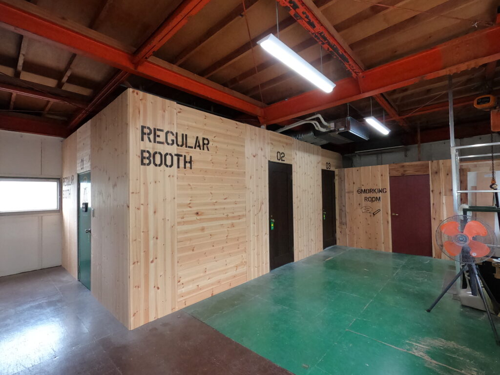 他店では机が並べられており、全員が共有するDIYレンタルブースが多いですが、当店のレンタルブースはすべて完全個室となっております。