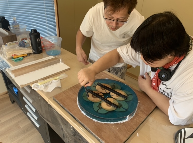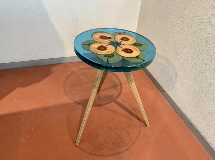 キャンプ好きなお客様と作ったウッドレジンサイドテーブル。